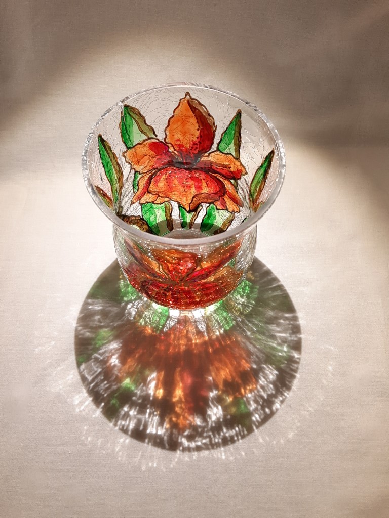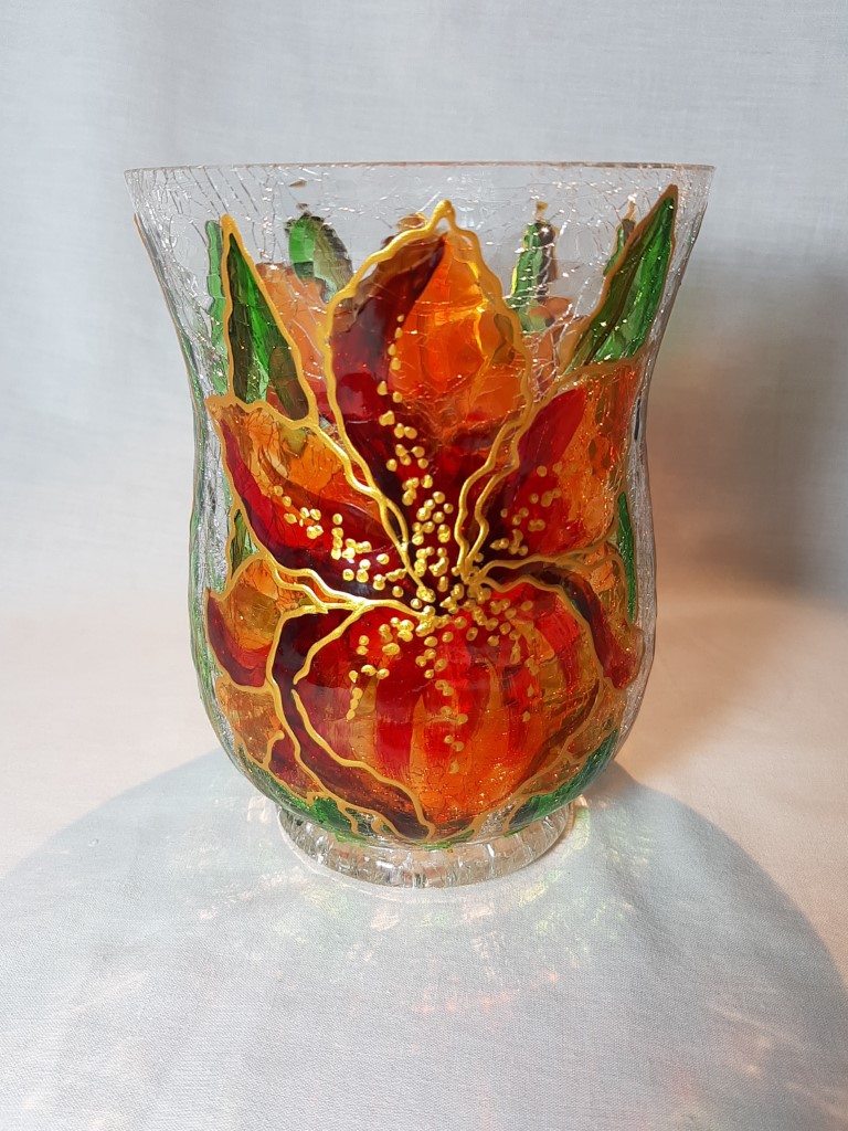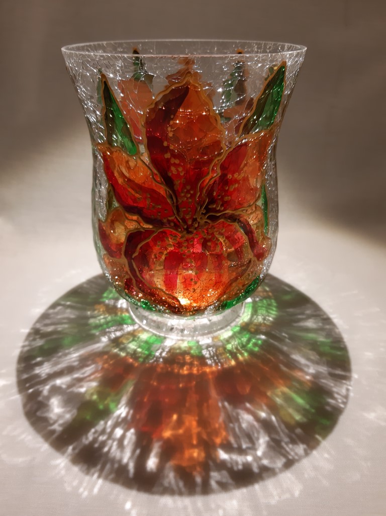 Painted glass for a tea light.