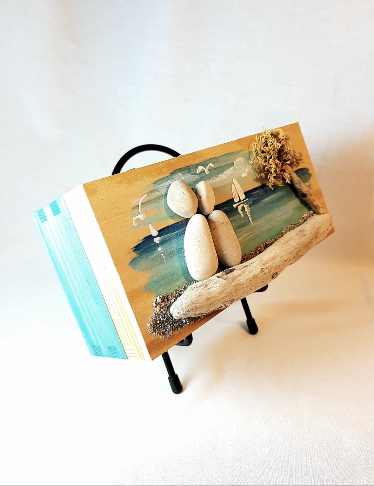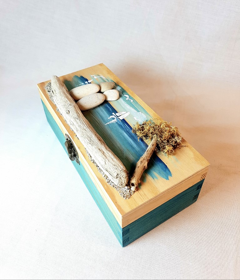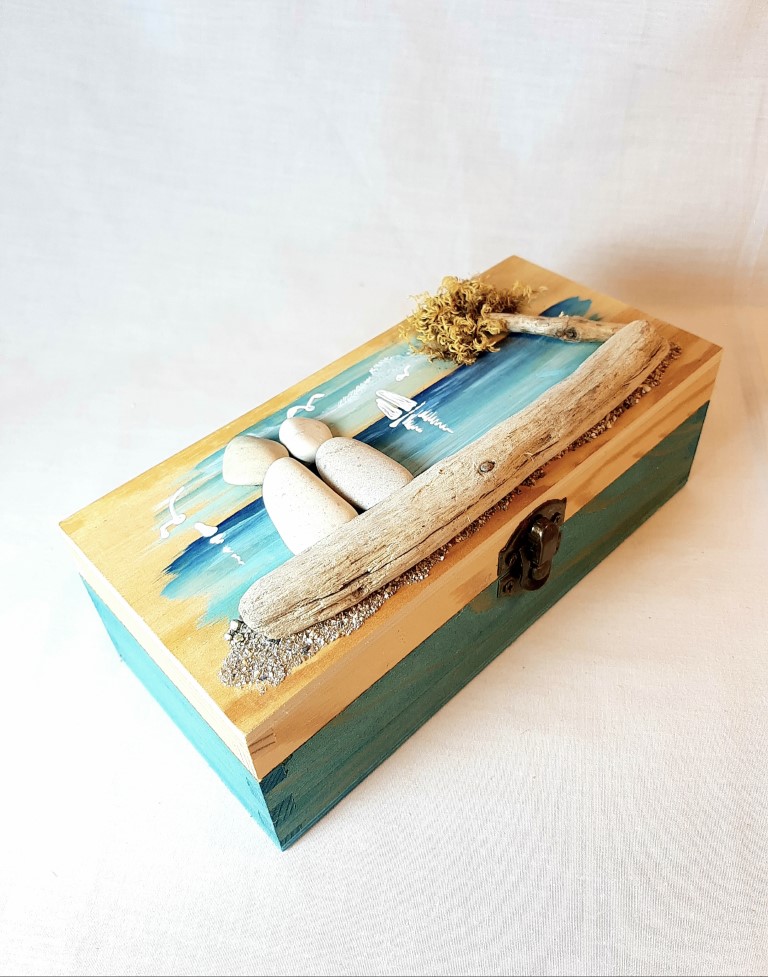 Be the first to review “Painted wooden box with pebbles and natural materials”