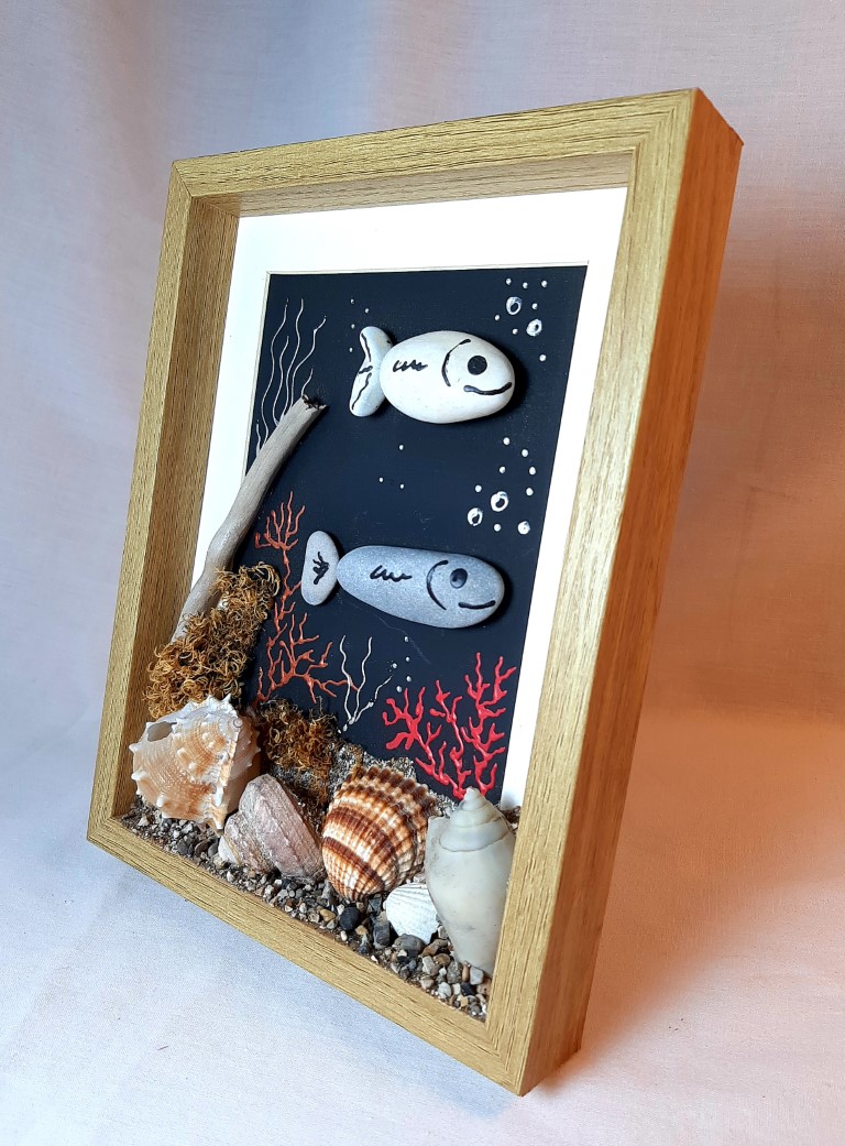 Pebble Art with natural materials on a frame